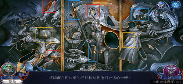 注:藍(lán)色為第一幅畫部分,黃色為第二幅畫部分,紅色為第三幅畫部分