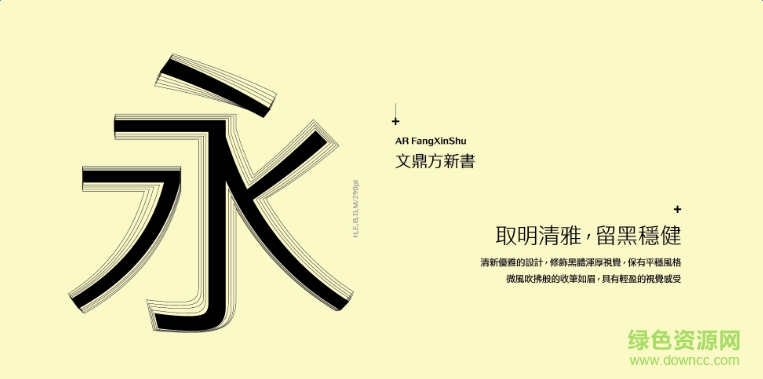 文鼎方新書(shū)是在黑體的基礎(chǔ)上設(shè)計(jì)出的一款新字體,字體結(jié)構(gòu)平穩(wěn),線條流暢,便于閱讀,喜歡這款字體的朋友就來(lái)綠色資源網(wǎng)下載吧!