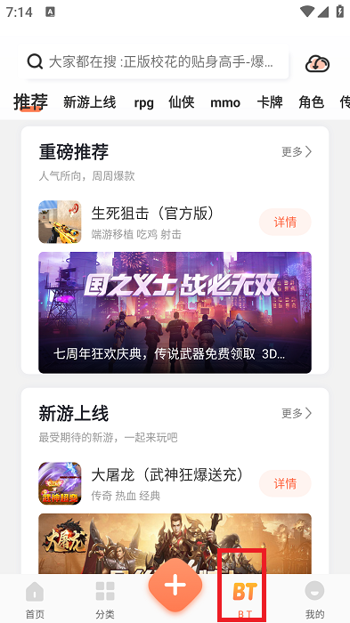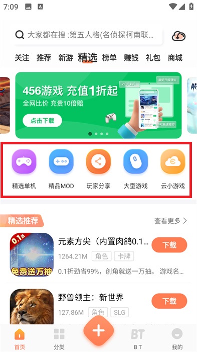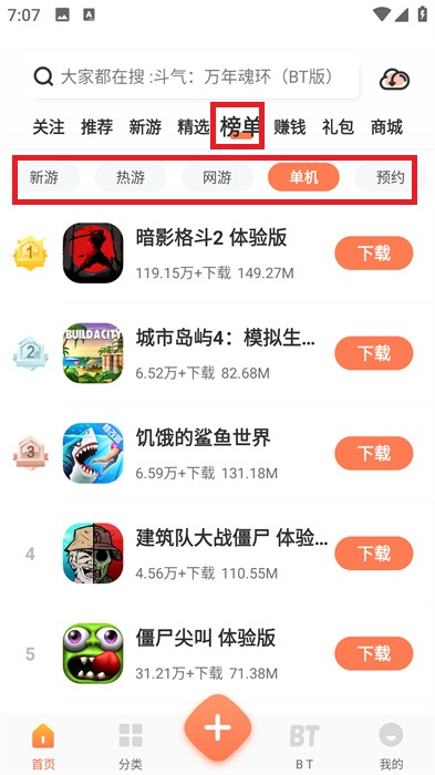3、【BT】頻道之中,能夠看到各種類型的BT游戲,都是一些加速或者是經(jīng)過(guò)修改過(guò)的游戲,帶來(lái)非常爽快的玩法體驗(yàn);