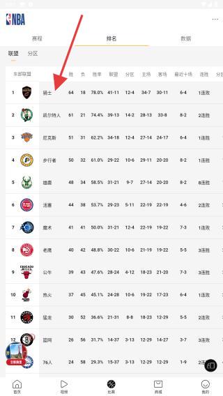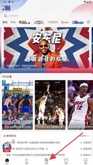 1、打開(kāi)NBAAPP進(jìn)入到首頁(yè)內(nèi),點(diǎn)擊比賽的功能圖標(biāo)。