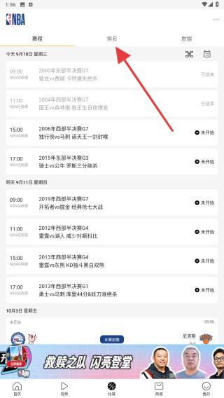 2、在賽程的界面內(nèi),點(diǎn)擊正上方排名的按鈕。