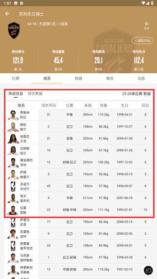 4、點(diǎn)擊后,可查看此隊(duì)伍完整的球員名單。