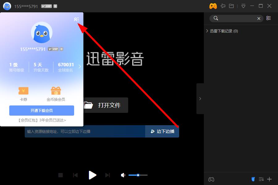 1、打開(kāi)迅雷影音app,點(diǎn)擊左上角的賬號(hào)頭像進(jìn)入賬號(hào)界面。