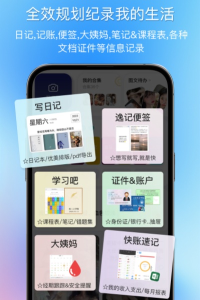 功能模塊齊全細(xì)化,針對(duì)個(gè)人生活人性化需求。計(jì)劃、快賬、日記、提醒。