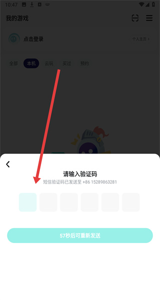 4、在填寫好手機(jī)號點擊登錄按鈕后,進(jìn)入到驗證環(huán)節(jié),點擊輸入框填寫獲取到的驗證碼,即可完成登錄。