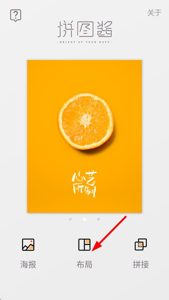 1、打開(kāi)拼圖醬APP,在主界面點(diǎn)擊布局選項(xiàng)。