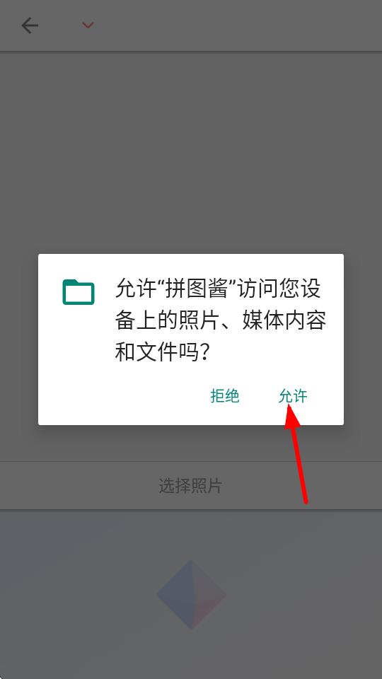 2、此時(shí)會(huì)彈出權(quán)限請(qǐng)求窗口,點(diǎn)擊允許,授權(quán)拼圖醬訪問(wèn)設(shè)備上的照片、媒體內(nèi)容和文件。