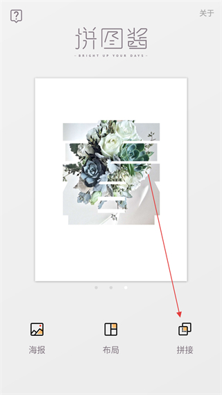 1、打開(kāi)拼圖醬APP,點(diǎn)擊底部的拼接選項(xiàng),進(jìn)入圖片選擇頁(yè)面。