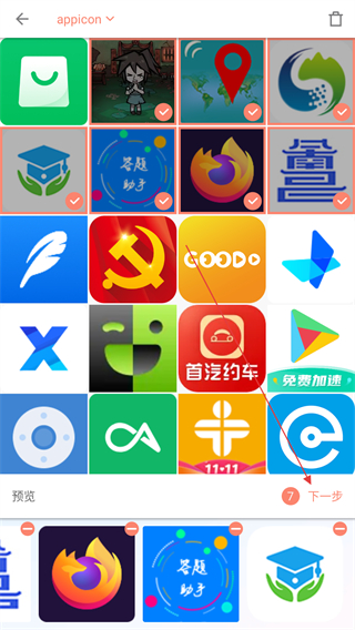 2、在圖片選擇頁(yè)面選擇需要拼接的圖片,點(diǎn)擊下一步按鈕。