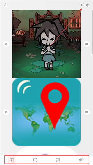 3、在拼接編輯頁(yè)面選擇合適的比例,還可對(duì)圖片進(jìn)行編輯操作。