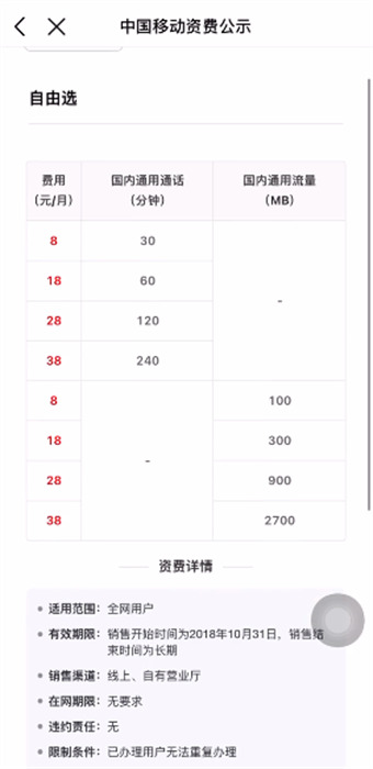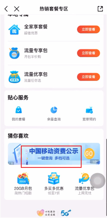 2、隨后,在這里能看到很多熱銷的套餐信息,并找到最下方【中國(guó)移動(dòng)資費(fèi)公式】;
