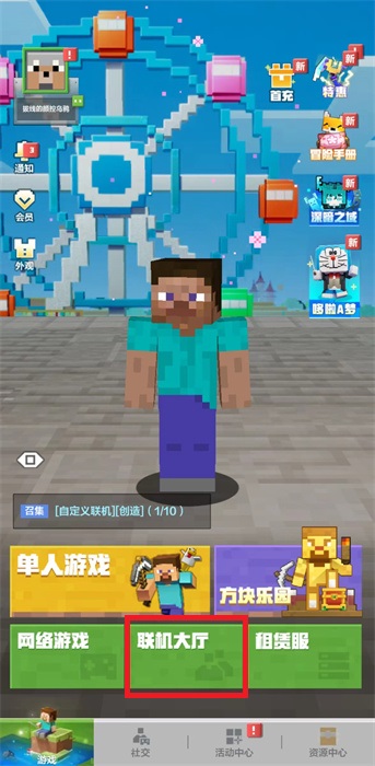 1、在游戲主界面之中,我們可以在其中看到【聯(lián)機(jī)大廳】,點(diǎn)擊進(jìn)入到聯(lián)機(jī)頁(yè)面中;
