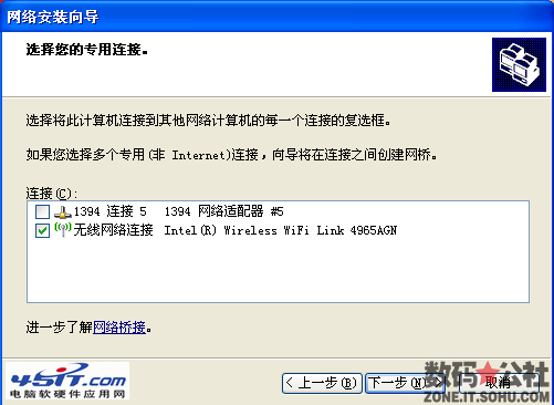 這里選擇你的無線網(wǎng)卡,點擊下一步,后一個會叫設(shè)置計算機描述 以及名稱。填上 點下一步 又有個設(shè)置工作組名 設(shè)置好 點下一步 然后選擇 "關(guān)閉文件和打印機" 點下一步