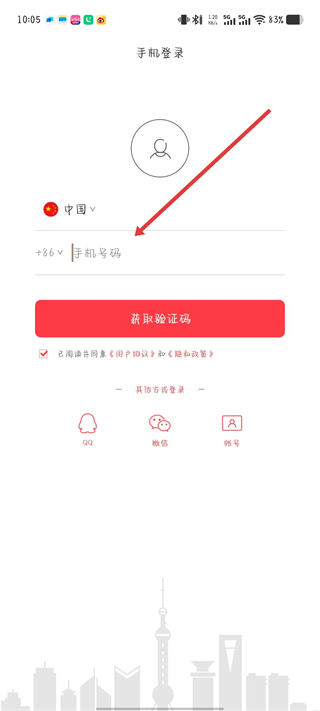 2、進(jìn)入手機(jī)登錄頁面,輸入手機(jī)號(hào)碼,點(diǎn)擊獲取驗(yàn)證碼按鈕。
