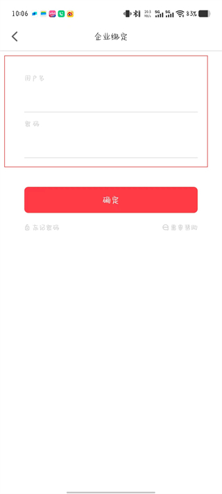 4、完成手機(jī)驗(yàn)證后,進(jìn)入企業(yè)綁定頁面,輸入用戶名和密碼即可。