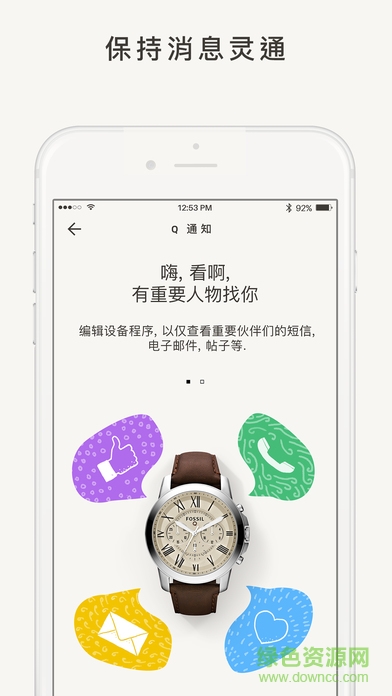 一切就緒,看著屏幕,去探索世界各地的五彩繽紛吧。這不正是進行好奇探索的最好時候? 好了,這就是你的 Q—讓你釋放自己,與朋友們聯(lián)系,更加隨心所欲,暢享生活無限精彩。 FOSSIL Q 是 Fossil 智能配飾的 Q 系列配套應(yīng)用程序。通過 FOSSIL Q,你可以進入好奇人的社區(qū),認(rèn)識其他跟你志同道合的好友,同時跟蹤你的日?;顒?,管理你的通知提醒。如果你的手表有顯示屏,你甚至可以設(shè)計各種耳目一新的手表外觀。還在等什么呢?