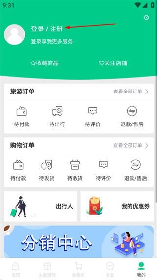 2、在個人中心頁面,找到“登錄/注冊”區(qū)域,點擊對應(yīng)位置進入賬號登錄界面。