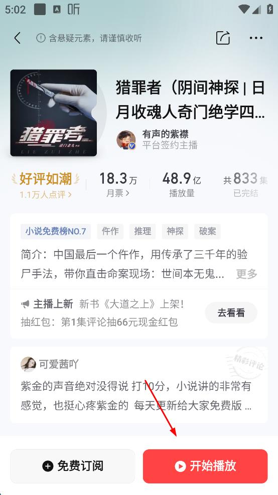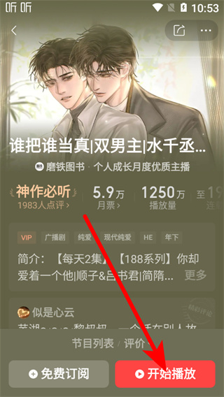 3、在廣播劇詳情界面,點(diǎn)擊開始播放按鈕,進(jìn)入播放頁面。