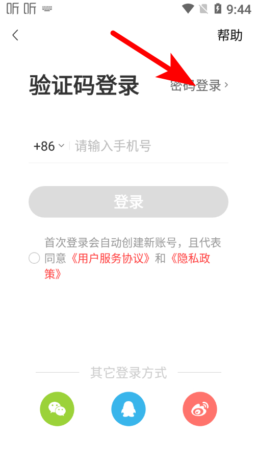 3、在登錄選擇界面,點(diǎn)擊密碼登錄選項(xiàng),進(jìn)入密碼登錄頁面。
