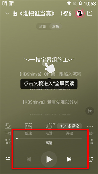 4、在播放頁面,可進(jìn)行倍速、點(diǎn)贊、評論等操作,開始收聽廣播劇。