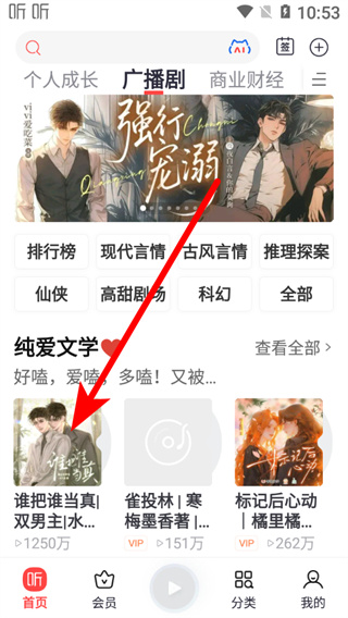 2、在廣播劇分類頁面,選擇想要收聽的廣播劇,進(jìn)入該劇詳情界面。