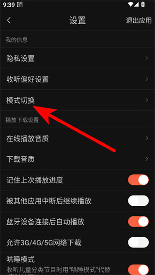 3、在設(shè)置頁面,點(diǎn)擊模式切換選項(xiàng),彈出模式選擇菜單。