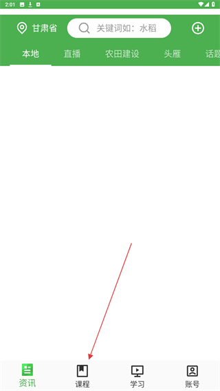 1、打開甘農(nóng)云app,進(jìn)入時(shí)點(diǎn)擊下方課程的標(biāo)簽。