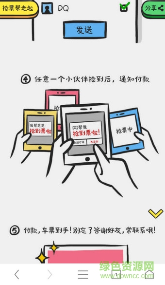 新增搶票任務(wù)并輸入搶票信息后,即可分享給親朋好友幫忙搶票