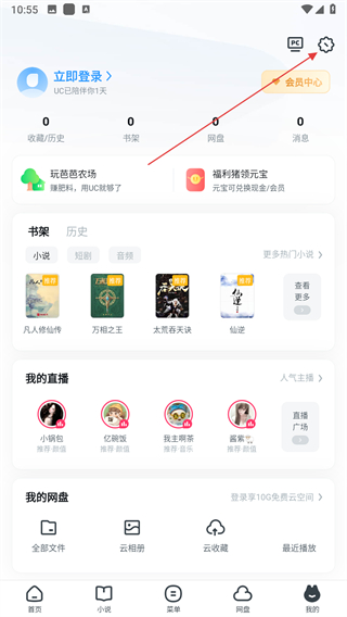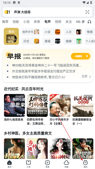 1、打開UC瀏覽器,點擊右下角我的選項,進入個人中心頁面。