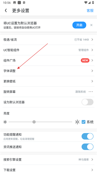 3、在更多設(shè)置頁面,點擊字體調(diào)整選項。