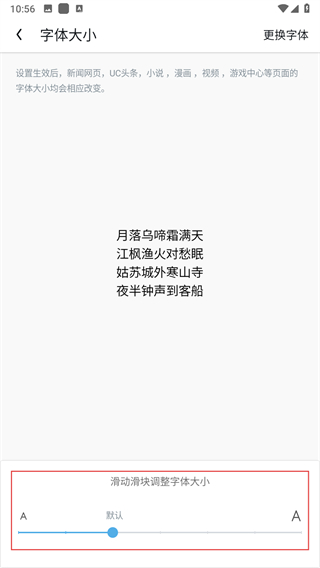 4、在字體大小頁面,滑動滑塊即可調(diào)整大小。