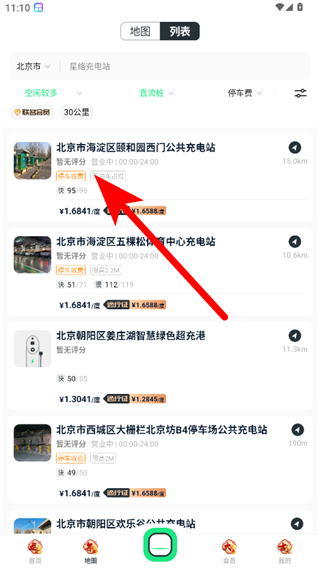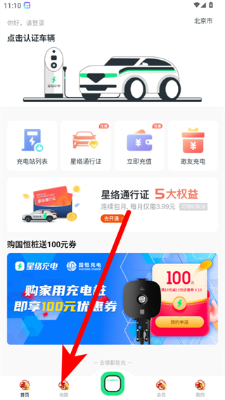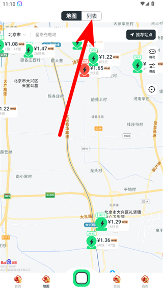 1、在星絡充電APP首頁,點擊底部地圖選項,進入地圖頁面。