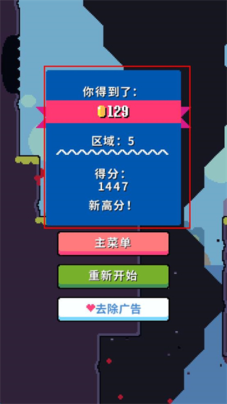 4、完成區(qū)域挑戰(zhàn)后,查看結(jié)算界面的得分與獎勵,可選擇重新開始游戲。