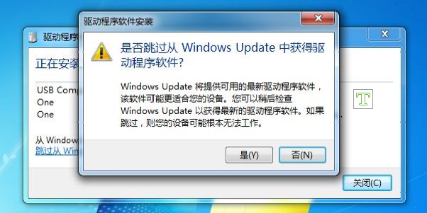 單擊“跳過從windows update 獲得驅(qū)動(dòng)程序軟件”。