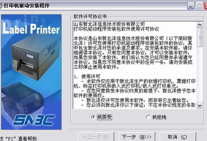 1)運行文件夾“LabelPrnSetup_CN V1.33”中的“Setup.exe”,仔細閱讀相關(guān)軟件許可協(xié)議,如果接受協(xié)議中所有條款,點擊“我接受”,然后點擊“下一步”按鈕。