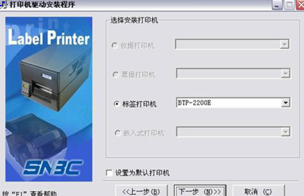 2)選擇安裝的打印機類型、名稱,如果要設(shè)置該打印機為系統(tǒng)默認打印機,選中“設(shè)置為默認打印機”按鈕,點擊“下一步”按鈕。