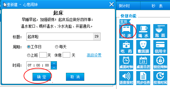 2、也可以直接在快捷功能里面選擇起床,這時就會彈出新的界面,直接選擇就可以
