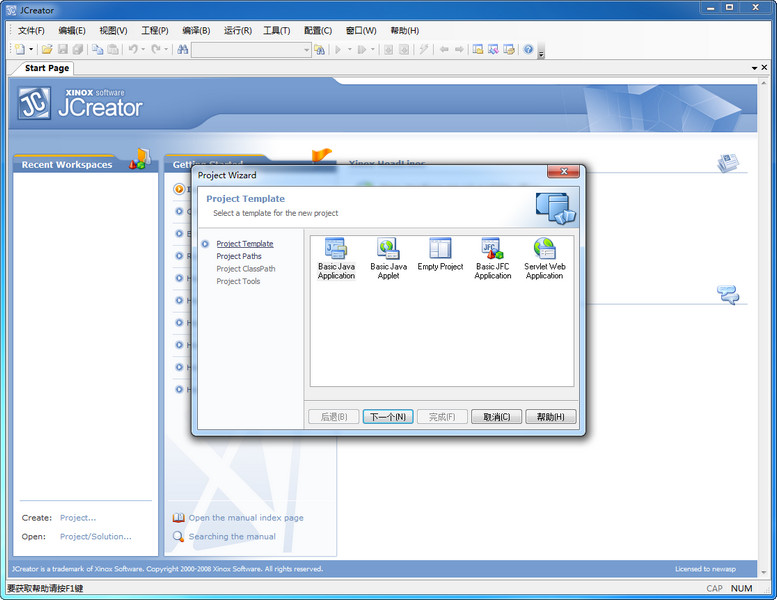 最后將漢化包內(nèi)的JCreator.exe覆蓋到安裝安裝目錄下即是漢化版。