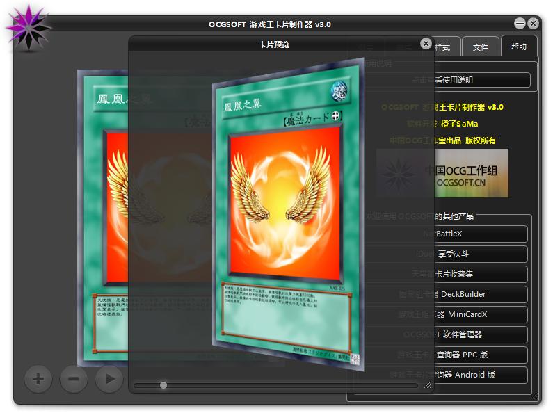 OCGSOFT游戲王卡片制作器是中國(guó)OCG工作組的又一力作。它可以讓玩家簡(jiǎn)單、輕松的制作出自己的卡片,并用于打印。這是第三代的卡片制作器,與第二代相比,它使用了全新的3D界面引擎,并且對(duì)各種操作都做了優(yōu)化,整體體驗(yàn)上比第二代好了很多。