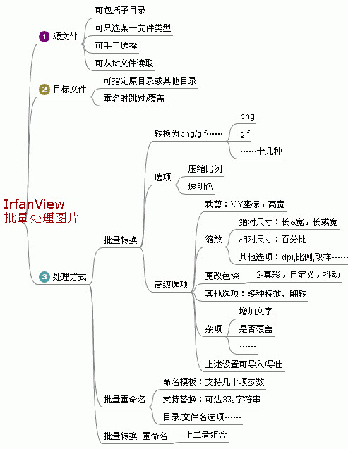 主要功能有:改變格式、改變大?。o(wú)論是絕對(duì)大小、百分比、縮放、裁剪)、改變方向、做特效、加文字、改文件名(極其強(qiáng)大,模板可調(diào)用幾十個(gè)參數(shù),還能同時(shí)做3組替換)...等等