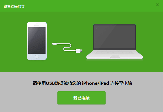下載完畢后打開軟件,點(diǎn)擊立即連接,然后將ios設(shè)備用數(shù)據(jù)線與電腦連接在一起,點(diǎn)擊我已連接即可將手機(jī)與小蘋果助手連接到一起。