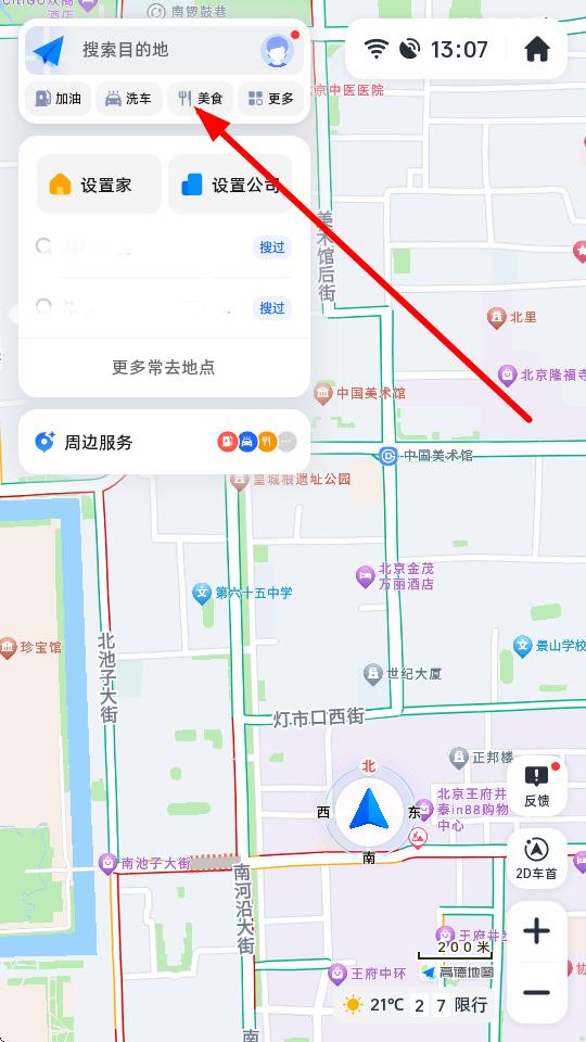 1、在高德地圖主界面,點(diǎn)擊搜索欄下方美食選項(xiàng)。