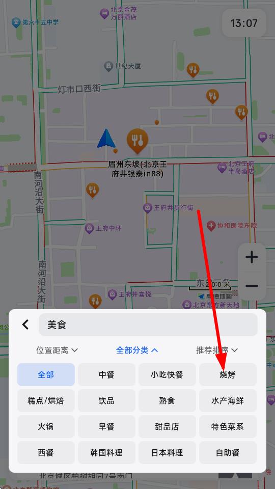 3、在分類界面中,選擇自己感興趣的美食類別,比如燒烤。