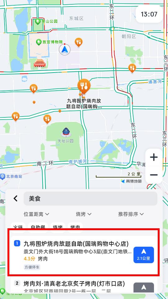 4、選擇完畢后,系統(tǒng)就會(huì)篩選出符合條件的附近美食店,方便您查看具體信息和前往。