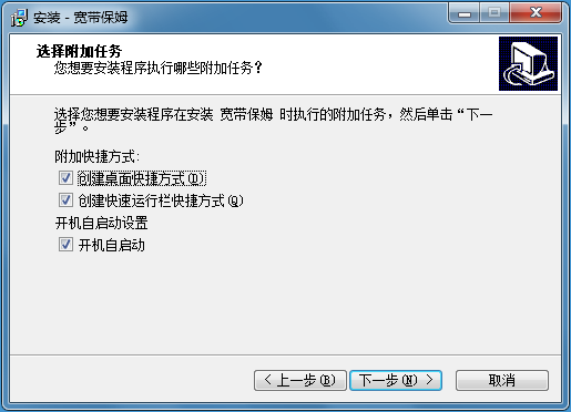 4.點(diǎn)擊下一步,選擇是否建立附加快捷方式和開機(jī)立即啟動,如圖: