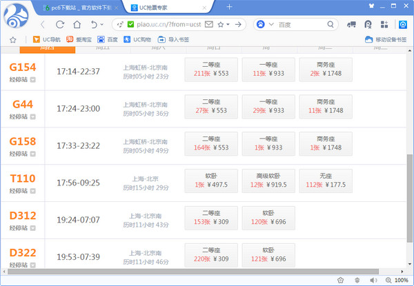 uc瀏覽器搶票專版是uc推出的搶火車票專版瀏覽器。用戶下載uc瀏覽器搶票版后,在瀏覽器內置擴展搜索中搜索“搶票專家”即可打開搶票插件。uc瀏覽器搶票專版集成uc12306搶票專家,可通過插件快速幫助用戶搶購火車票。極大地提升網民在12306網站訂票的效率和成功率,在一分鐘內可輕松完成查票、訂票和下單的整個操作流程。軟件支持自動刷票,用戶設置好時間,即可自行購票,無需在苦苦刷新,無需擔心比別人慢,當購票成功后,將在右下角自動提醒,防止用戶錯過付款時間。