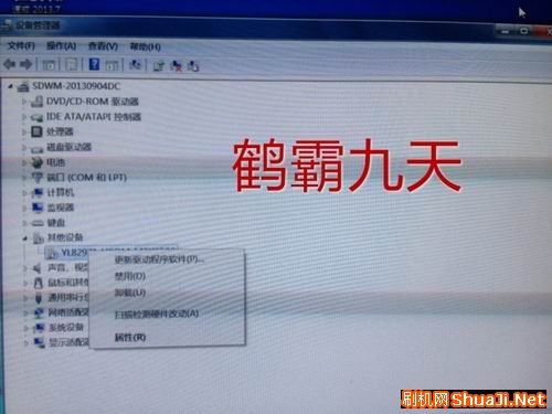 ⑤立即在新發(fā)現(xiàn)設(shè)備上鼠標(biāo)右鍵,點(diǎn)擊“更新驅(qū)動程序軟件”如下圖:
