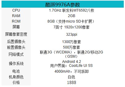 酷派大神Coolpad 9976A手機(jī)USB驅(qū)動程序,官方最新驅(qū)動,是連接電腦的必備組件,刷機(jī)必備,有需要的就下載吧??崤?976A,它使用了一塊7英寸的視網(wǎng)膜超大屏使用了聯(lián)發(fā)科最新的MT6592八核處理器+2GB運(yùn)存的旗艦級搭配。并使用了一顆1300萬像素的主攝像頭,保證了其在拍照方面得穩(wěn)定發(fā)揮。在系統(tǒng)方面酷派9976A使用了Android 4.2的操作系統(tǒng),并搭載其最新研發(fā)的CoolLift UI 5S的用戶界面,使手機(jī)在功能性和易用性上得到了充足的保證。