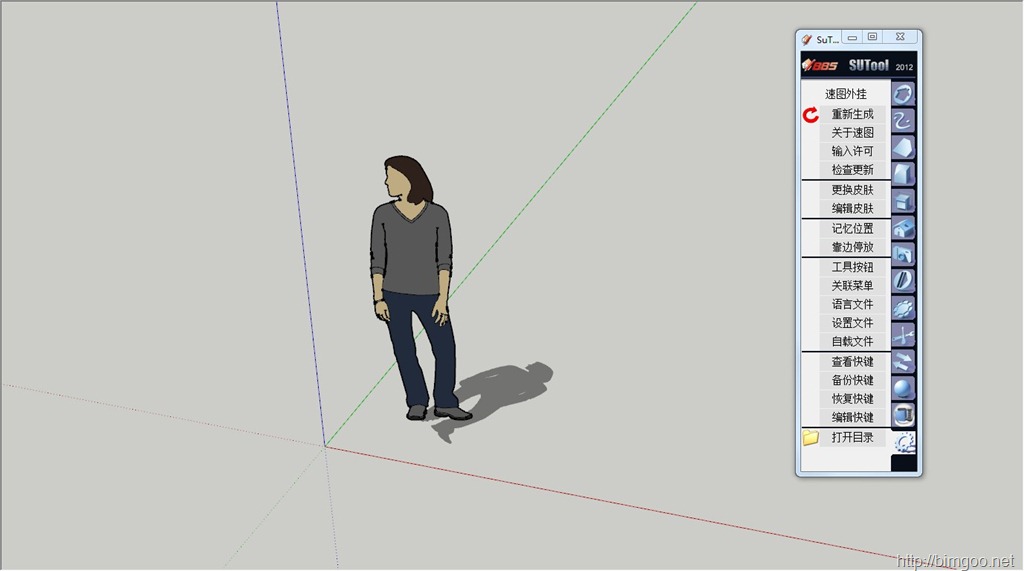 速圖SuTool是一款國(guó)人開發(fā)的Sketchup插件管理器,原開發(fā)者為鄭州大學(xué)建筑系一老師,利用該插件能方便的管理草圖大師sketchup插件,其內(nèi)置了很多常用的插件,比如2DTool、貝茲曲線等,用戶可以方便的安裝自己需要的插件,只SuTool可以直接讀取插件壓縮包,而不用將其解壓后放入sketchup插件目錄pluges中,非常方便,可以對(duì)所安裝的插件進(jìn)行分組,將功能相似的插件放在一起,可以對(duì)全部插件自由的復(fù)制、組合、排列,還可以自定義SuTool界面,及所用語(yǔ)言(簡(jiǎn)體中文夠了吧)!速圖SuTool最新版本是2012,速圖SuTool2012已經(jīng)免費(fèi)使用,點(diǎn)擊此處下載速圖SuTool2012,速圖SuTool2012可以精簡(jiǎn)sketchup的工作界面,其采用集中式的插件管理,使用SuTool安裝的插件全部集成在一個(gè)工具條窗口中,避免了以前大量插件工具條占據(jù)工作界面的情況,工作界面簡(jiǎn)潔明了,如果再配合一個(gè)sketchup窗口全屏插件,哇--整個(gè)世界清凈了!