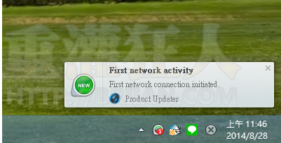 第四步:另外,只要 GlassWire 軟體還在運(yùn)作中,每當(dāng)有應(yīng)用程式「第一次」開始對(duì)外連線時(shí),桌面右下角都會(huì)跳出一個(gè)警示訊息,提醒我們某個(gè)檔案或軟體正在對(duì)外聯(lián)繫,讓我們注意是否有啥問題。